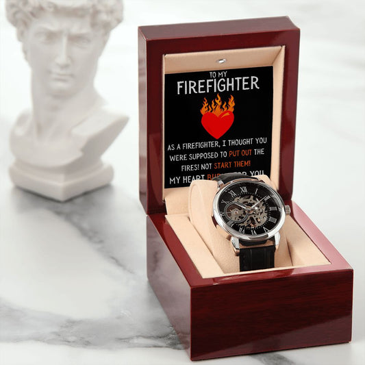 To My Firefighter - My Heart Burns for You - Men's Openwork Watch
