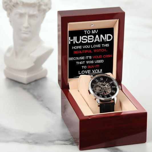 To My Husband - It Was Your Cash That Bought This! - Men's Openwork Watch