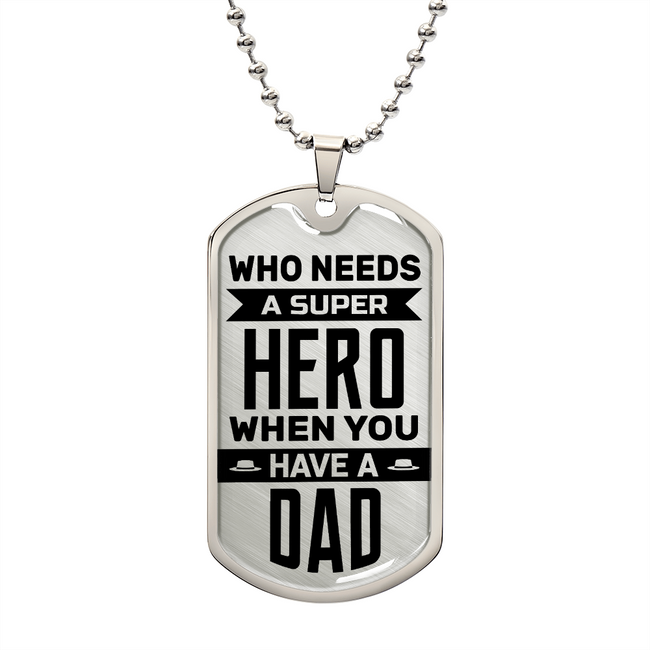 Dad - Who Needs a Super Hero - Military Dog Tag Chain Necklace