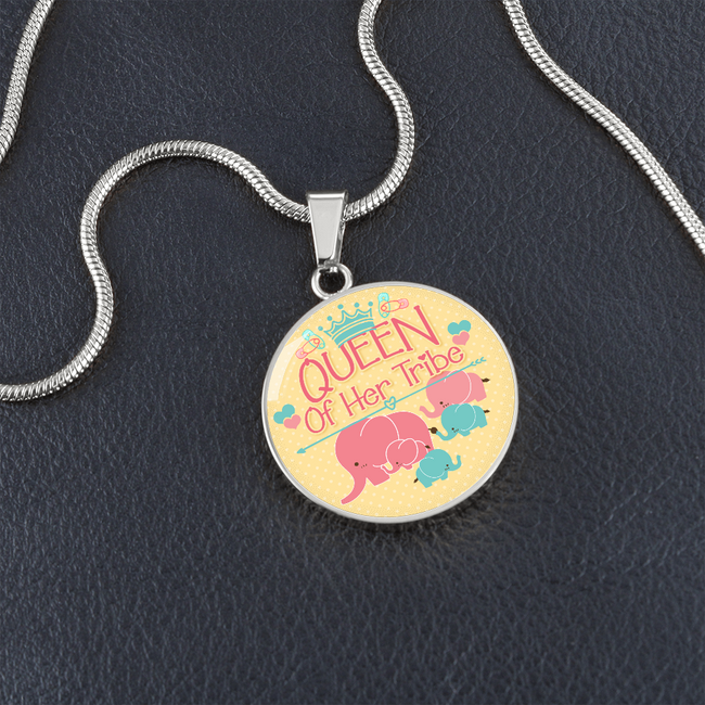 Mother - Queen of Her Tribe - Engravable Circle Pendant Necklace