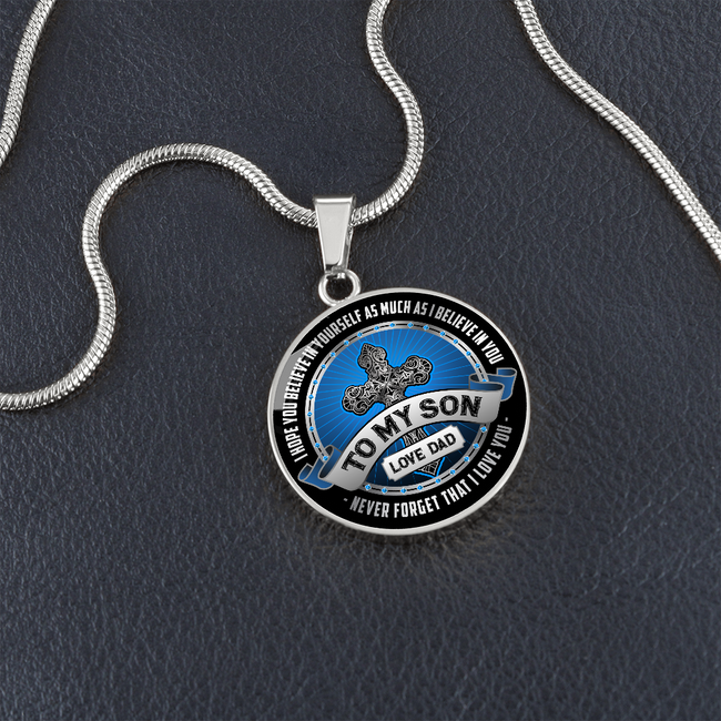 To My Son - Love Dad - Engravable Circle Pendant Necklace