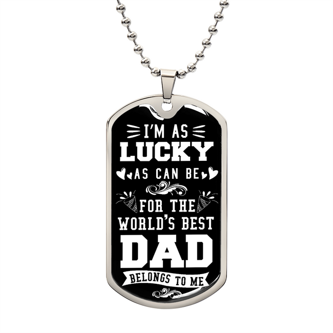 Worlds Best Dad - Belongs to Me - Military Dog Tag Chain Necklace